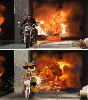 Zane postanowił wówczas stworzyć całą serię zdjęć, przedstawiających jego pociechę w ramach ujęć stylizowanych na słynne kadry z filmów i seriali. Efekt potrafi wywołać na twarzy uśmiech, ale i solidnie wzruszyć. Spójrzcie sami:
