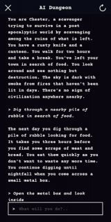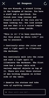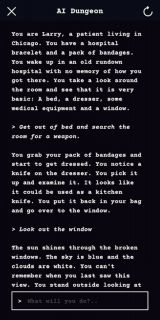 Oprogramowanie dostępne jest całkowicie za darmo na urządzenia z Androidem oraz iOS-em, a jego obsługa jest banalnie prosta. Po zalogowaniu się do sytemu trzeba jedynie wybrać typ świata, w którym chcemy rozegrać przygodę, swoją profesję oraz imię. Apka wygeneruje scenę początkową i w tym miejscu rozpocznie się rozgrywka. Aby popchnąć akcję do przodu, należy wpisać komendę w okienko dialogowe. Sztuczna inteligencja przeanalizuje ją i wystosuje odpowiedź. Warto zauważyć, że gracz nie jest ograniczony do żadnych z góry narzuconych poleceń. Powinien jedynie pilnować, żeby te zaczynały się od czasownika, a dialogi były ujęte w cudzysłów. Poza tym panuje pełna dowolność w prowadzeniu narracji.