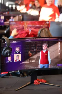 fot. naEkranie.plNa zakończonych w niedzielę targach Poznań Game Arena 2024 można było odwiedzić strefę Kleks Academy, gdzie spotkać można było dwójkę młodych aktorów grających w tegorocznej Akademii Pana Kleksa: Tosię Litwiniak – odtwórczynię roli Ady Niezgódki oraz Konrada Repińskiego, który wcielił się w Alberta, i zrobić sobie z nimi zdjęcia, z czego ochoczo korzystali najmłodsi fani filmu. Była też strefa z rozstawionymi komputerami, gdzie można było zagrać w sam początek gry z samouczkiem. Zabawa rozpoczynała się od stworzenia swojej postaci w prostym edytorze. Do wyboru są dwa modele chłopca i dwa dziewczynki oraz kilka strojów dla każdego z nich, a także trochę fryzur, czy zmiana koloru oczu. Potem można chwilę pobiegać po wnętrzach, zbierając piegi i ucząc się pierwszych umiejętności, jak podwójny skok. Po wykonaniu kilku prostych zadań nasz bohater wydostaje się na zewnątrz i w kolorowym lesie może wykorzystać nowo nabytą umiejętność do skakania po platformach w celu zdobycia klucza otwierającego przejście do kolejnej części poziomu. Na tym pokazany fragmencik gry się kończy. Grafika jest naprawdę niezła, gra korzysta z możliwości silnika Unreal i otoczenie prezentuje się całkiem dobrze, ale praca kamery, animacje postaci oraz kolizje wymagają jeszcze dopracowania. Nie ma w tym jednak nic dziwnego, bo gra jest na wczesnym etapie produkcji. Starsi i bardziej wymagający gracze nie znajdą w Kleks Academy nowych mechanik, zręcznościowych wyzwań czy trudnych zagadek, ale najmłodsi na pewno będą z radością zwiedzać świat znany z filmowej Akademii Pana Kleksa.