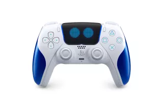 Limitowany model DualSense z gry Astro Bot wykonany jest w kolorze białym, choć zadbano także o niebieskie akcenty kojarzące się z wyglądem tytułowego bohatera. Znajdujący się w centralnej części touchpad ozdobiono zaś charakterystycznymi oczami sympatycznego robota. Zobaczcie sami, jak to się prezentuje.