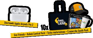 Nagrody dodatkowe w drugim tygodniu to: słuchawki Apple Airpods Pro 2 i 10 zestawów z torbą materiałową, kubkiem Cental Perk, czapeczką South Park i grą Friends.