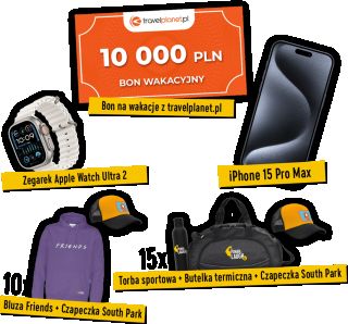 Wśród nagród głównych znajduje się bon wakacyjne z travelplanet.pl o wartości 10 000 zł, zegarek Apple Watch Ultra 2, iPhone 15 Pro Max, 10 zestawów z bluzą Friends z czapeczką South Park i 15 zestawów z torbą sportową, butelką termiczną i czapeczką South Park. Nagrody główne czekają na 28 szczęśliwców, którzy udzielą poprawnych odpowiedzi na każde z wyświetlonych pytań podczas trwania konkursu, których łącznie będzie 63.