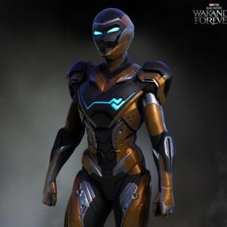Również Phil Saunders podzielił się w mediach społecznościowych kolejnymi grafikami z Riri Williams w zbroi Ironheart. Artysta napisał, że to, co bohaterka nosi pod dodatkową zbroją, którą widać w filmie, powinna być nazywana Mk 2.5 (Mark 2.5). Co ciekawe schemat montażu tego kostiumu pojawił się w Wakandzie, gdy Riri nad nim pracowała. Saunders dodał jeszcze, że pierwotnie była też scena, w której Namor wyłącza ulepszenia bojowe, a Riri musi wyrzucić dodatki do pancerza pod wodą. Miała uciekać tylko w kombinezonie bazowym z repulsorami. Ostatecznie scena została wycięta.