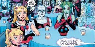 W finałowym zeszycie Quinn budzi się więc przywiązana do krzesła, a naprzeciw niej zasiadają wersje antybohaterki z różnych okresów historycznych i innych rzeczywistości. Możemy tu zobaczyć m.in. Harley-robota, starszą Harley, wersję niewidzialną, kosmitkę i... Harley-Czarodziejkę z Księżyca. Spójrzcie sami: