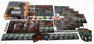 Wewnątrz pudełka znajdzie się sporo zawartości: 7 Figurek i Plansz Ocalałych, 6 Figurek oraz Plansz Zabójców, 4 Pierścienie Ran, 16 Kart Przedmiotów, 28 Kart Umiejętności Ocalałego, 24 Karty Umiejętności Zabójcy, 21 Kart Ruchu, 2 Arkusze z Żetonami, 4 Kości Testu Umiejętności, 1 Kość Niebezpieczeństwa oraz dwustronna plansza główna pozwalająca na wybór jednej z dwóch lokacji: Posiadłości Macmilanów lub Złomowiska Autohaven.