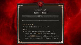 Pierwsze ukończenie Rzeźni Zira zapewnia wyjątkową nagrodę w postaci unikalnego i potężnego glifu, Krwawych Łez. Później zaś można go ulepszać wraz ze zwiększaniem rangi lochu. Trzeba jednak pamiętać, że każda ranga wiąże się ze wzrostem poziomu trudności.