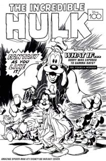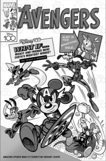 Poniżej znajdziecie pierwsze warianty okładek. Znajdują się na trzech pierwszych slajdach. Na pozostałych zdjęciach w galerii są za to pokazane starsze crossovery Disneya i Marvela – może nie wiecie, ale Myszka Miki miał już nawet okazję podnieść tarczę samego Kapitana Ameryki i wejść w zbroję Iron Mana!