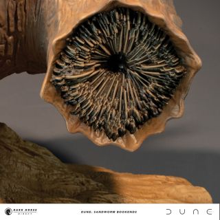 Amerykańskie wydawnictwo Dark Horse Direct przy współpracy z wytwórnią filmową Legendary Entertainment zaprojektowało figurkę czerwia, czyli istoty zamieszkującej pustynne obszary na planecie Arrakis. Służy ona jako podpórka na książki. Jej wymiary to: 21,6 cm wysokości, 20,3 cm szerokości i 16,5 cm głębokości. Została skrupulatnie wyrzeźbiona i ręcznie pomalowana. Koszt takiego gadżetu to 149,99 dolarów. Przesyłka też nie jest lekka, bo waży około 8,5 kilograma. Wysyłka podpórki rozpocznie się w grudniu tego roku. Zobaczcie w poniższej galerii jak prezentuje się ta figurka.