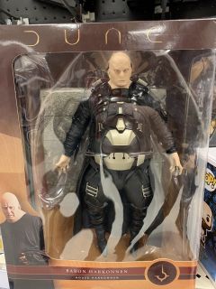 Baron Vladimir Harkonnen to czarny charakter filmu Diuna, w którego wciela się Stellan Skarsgård. W samym zwiastunie jest przez zaledwie sekundę i nie mogliśmy zobaczyć aktora w pełnej charakteryzacji. Dzięki jego wizerunkowi na pudełku po raz pierwszy możemy wyraźnie zobaczyć, jak Skarsgard wygląda w roli Harkonenna.
