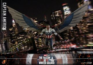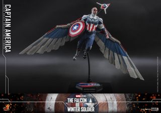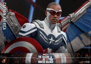 Z ostatnich ciekawostek mamy także potwierdzenie ze strony Anthony'ego Mackie, że skrzydła w nowym kostiumie stworzone są z Vibranium. Przypomnijmy, że kostium został sprezentowany przez Wakandę, zatem nic dziwnego, że tego właśnie surowca użyto przy tworzeniu nowego stroju Kapitana Ameryki. Zobaczcie też zdjęcia figurki Kapitana Ameryki od Hot Toys, która w dobrej jakości pokazuje liczne detale kostiumu i wyposażenia Sama Wilsona.