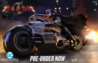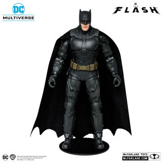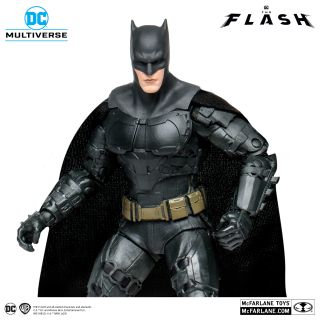 Przedmiot kolekcjonerski pochodzi od McFarlane Toys, a dokładnie z ich linii DC Multiverse. Figurka ma siedem cali i przedstawia Batmana z Flasha. Mroczny Rycerz ma na sobie kostium, na którym dumnie błyszczy logo nietoperza, tym razem o wiele ciemniejsze niż w poprzednich filmach. W dodatku w kolekcji jest także klasyczny motocykl Batmana.