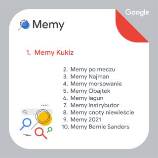 Na tym jednak nie koniec, gdyż Google przygotowało również inne zestawienia najczęściej wyszukiwanych haseł w Polsce w 2021 roku. Jeśli chcesz wiedzieć, jakie memy cieszą się popularnością w naszym kraju, jakie tematy najbardziej interesują polskiego odbiorcę czy które przepisy były najczęściej wyszukiwane w internecie – przejrzyj poniższą galerię.