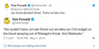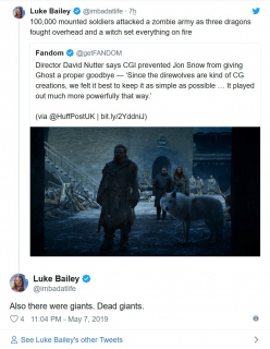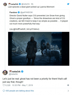 Gra o tron w 4. odcinku 8. sezonu zaproponowała widzom scenę między Jonem a jego wilkorem, Duchem. Reżyser broni fragmentu, który dla wielu fanów nie był satysfakcjonujący.