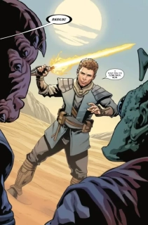 Z okazji pojawienia się filmu w kinach, opublikowany zostanie także komiks towarzyszący, który ma przedstawić wydarzenia dziejące się w życiu Anakina Skywalkera, których nie widzieliśmy na wielkim ekranie. Wśród takich scen jest ta, w której młody Ani wyobraża sobie siebie samego jako rycerza Jedi, który powraca na Tatooine, by uwolnić matkę z niewoli. Robi to jednak z żółtym mieczem świetlnym, który od razu przywodzi na myśl Rey. Jak wiadomo, taki kolor miecza symbolizuje równowagę, ale i dwoistość.