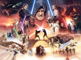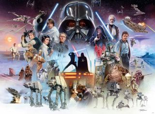 Do tego artysta Brian Hood przygotowała kapitalne, idealne na tapetę grafiki trzech trylogii. Zostały one u niego zamówione do wykorzystania w kolekcjonerskiej edycji puzzli Gwiezdnych Wojen.