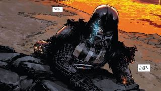 Teraz Vader będzie zmuszony użyć swoich umiejętności inżyniera, by zrekonstruować swoje ciało - czołgając się, bez kończyn, całkowicie wyczerpany; jednocześnie Wielki Wezyr Amedda poinformował Palpatine'a, iż Vader chce go zabić. Palpatine to lekceważy; przyznaje że skłamał o śmierci Amidali, zmusił Anakina do porzucenia Jedi, a teraz karze swojego ucznia.