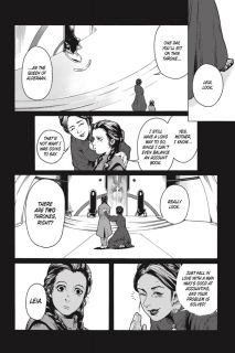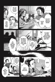 Poniżej możecie obejrzeć jak prezentuje się w całości okładka Leia: Princess of Alderaan, a także kilka kolorowych i czarno-białych stron. Czytamy od prawej do lewej strony.