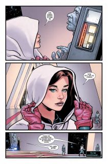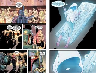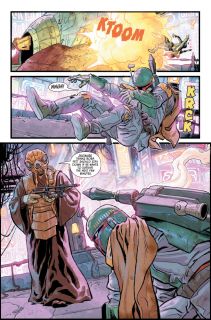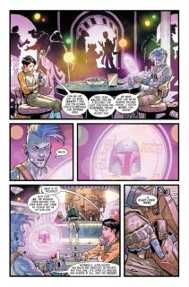 Historia rozgrywa się więc po tym, jak Han Solo został zamrożony w karbonicie. Boba Fett jest w drodze na Tatooine, by oddać go Jabbie, ale po drodze natrafia na problemy. Wszyscy wiemy, że Han w tym momencie jest wartościowym kąskiem, więc... został skradziony Bobie. Komiks zdradził, że odpowiada za to Karmazynowy Świt, a kradzież zorganizowała szefowa organizacji, Qi'ra. Jest to pierwsze "spotkanie" Qi'ry z Solo od wydarzeń z kinowej superprodukcji. Co ciekawe, ten komiks jest powrotem Karmazynowego Świtu do gry w przestępczym świecie. Nie wiadomo. co się działo z Qi'rą i organizacją przez te lata. Być może działali w ukryciu zwiększając swoje wpływy.