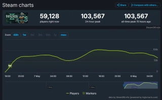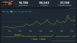 Hades 2 zadebiutował we wczesnym dostępie na Steam i Epic Games Store 6 maja, ale twórcy ze studia Supergiant Games już teraz mają powody do zadowolenia. Jak wynika ze statystyk zebranych przez serwis SteamDB, druga część w niespełna 10 godzin od debiutu w early accessie pobiła rekord poprzedniczki jeśli chodzi o liczbę jednocześnie aktywnych graczy na platformie Valve. "Jedynka" przyciągnęła 37,749 osób jednocześnie niedługo po swojej premierze, podczas gdy "dwójka" już teraz może pochwalić się ponad 100 tysiącami grających.