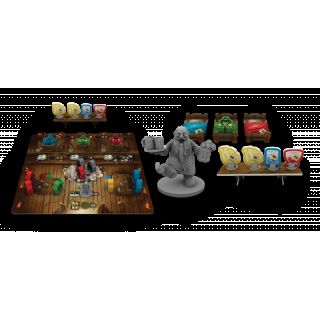 1 instrukcja ● 1 plansza główna ● 1 worek przybyszów ● 52 pionki przybyszów ● 13 czerwonych wojowników ● 13 zielonych bardów ● 9 niebieskich czarowników ● 9 żółtych arystokratów ● 8 szarych łotrów ● 12 różowych klejnotów „+100 złota” ● 5 sztandarów kupieckich i plastikowych podstawek ● 36 kart mieszkańców: -12 Miejscowych -12 Najemników -12 Żeglarzy ● 3 karty łotrów (Przestępcy, Kultyści, Rabusie) ● 4 karty kupców (po 1 dla każdego kupca) ● 60 kart zepsucia ● 6 trójwymiarowych łodzi ● 2 drewniane znaczniki myszy ● 1 drewniany znacznik fazy handlu ● 5 znaczników złota (po 1 w każdym kolorze gracza) ● 5 znaczników czasu (po 1 w każdym kolorze gracza) ● 2 dwustronne żetony przybyszów