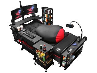 O tym nietuzinkowym gadżecie od Bauhutte napisała redakcja Kotaku, nazywając go gamingowym łóżkiem, ale sprzęt ten ma niewiele wspólnego z meblem, który znajdziemy w typowych sypialniach. To wszak całe zaplecze wypoczynkowe, na które składa się szereg modułów. Centralnym punktem jest oczywiście wygodny materac, ten jednak okala mnóstwo dodatkowych elementów. Oto jak zestaw prezentuje się w pełnej krasie: