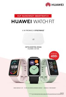 Podobnie jak w przypadku nowych tabletów, do zamówień przedpremierowych producent dorzuca za 1 zł inteligentną wagę od Huawei AH100. Huawei Watch Fit wyceniono na 499 zł.