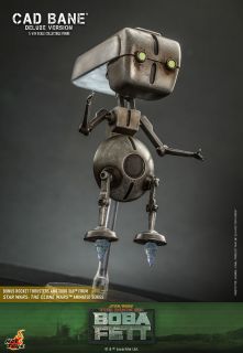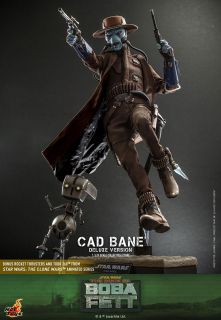 Figurki Hot Toys zawsze są szczegółowo dopracowane w najmniejszym detalu. Nie inaczej jest z Cadem Banem, który wygląda jak żywcem wyjęty z ekranu. Ten łowca nagród został odtworzony w skali 1/6. Ma parę blasterów, miotacz ognia, ręcznie rzeźbioną głowę, umiejętnie uszyty kapelusz i strój. Wszystko w jakości, która zachęci niejednego fana. Jest też znany z animacji droid, który mu towarzyszy oraz specjalne buty, które pozwoliły mu wyjść z opałów. Zobaczcie sami.