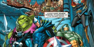 Tymczasem w The Tower At The Center Of Everything z Free Comic Book Day: Avengers/Hulk #1 zostaje nam przedstawiona nowa drużyna Avengers z multiverse, którzy pochodzą z uniwersum, w którym Atlantyda zawarła pokój ze światem na powierzchni. W tej teraźniejszości świat jest chroniony dzięki atlantydzkim Avengersom, na których czele stoi ich wersja Kapitana Ameryki. Są też wodne odpowiedniki Iron Mana, She-Hulk czy Thora.