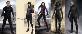 Szkice z Ms. Marvel pokazują superbohaterkę w różnych kostiumach. Ten z irokezem inspirowany Kapitan Marvel, której Kamala Khana jest fanką, widzieliśmy już na zdjęciach z planu. Po lewej wydaje się, że to jest już jej kostium superboahterki zaczerpnięty komiksu. Są także grafiki z serialu Hawkeye - tutaj widzimy kostium Kate Bishop, Clinta Bartona oraz prawdopodobnie Yeleny. Grafika wskazuje, że ta ostatnia stanie się żeńską wersją Ronina. Zobaczcie: