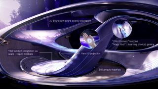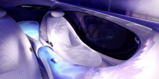 Wnętrze w niczym nie przypomina tego, które znajdziemy w klasycznych samochodach. Brak tu tradycyjnej deski rozdzielczej czy kierownicy, auto kontroluje się za pośrednictwem manipulatora umiejscowionego pomiędzy siedzeniami. Po przyłożeniu doń ręki, system biometryczny skanuje użytkownika i odblokowuje auto. Manipulator skrywa także ciekawą nowinkę technologiczną – po odpowiednim przekręceniu urządzenia koła można obrócić w taki sposób, aby samochód jechał w bok, co może pomóc w zaparkowaniu pojazdu.