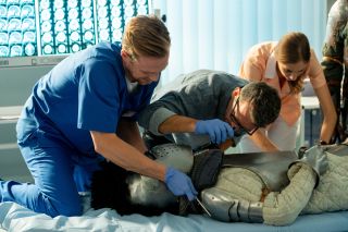 Radwan i Homolka szykują się do przyjęcia na oddział Gabrieli - pacjentki w zaawansowanej ciąży, u której wykryto wirusa.