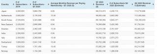 - Azja-Pacyfik - liczba subskrybentów to 16 233 000, a wpływy sięgnęły prawie 15 mld dolarów.