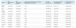 - USA - liczba subskrybentów to 67 622 000, a wpływy sięgnęły aż 100 mld dolarów.