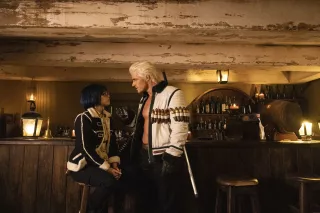 Na zdjęciu z 2. sezonu One Piece, który powstaje na podstawie mangi o tym samym tytule autorstwa Eiichirō Ody, znajdują się Smoker i Tashigi, w których wcielają się odpowiednio Callum Kerr i Julia Rehwald. Są ubrani dokładnie tak, jak ich odpowiedniki z anime, bo nawet Smoker ma przy sobie dużo cygar.