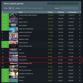 Znacznie lepiej prezentują się natomiast inne statystyki. Ze SteamDB wynika, że przez ostatnie 24 godziny w Overwatch 2 jednocześnie grały ponad 52 tysiące osób. To naprawdę solidny wynik, dzięki któremu sieciowa strzelanka Blizzarda wskoczyła do "topki" najchętniej ogrywanych produkcji na platformie Valve.