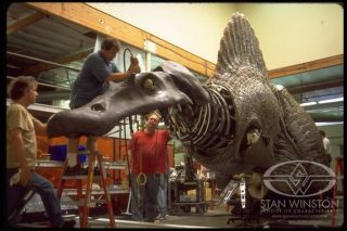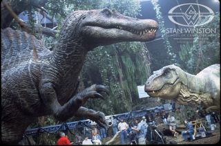 Jednak Park Jurajski 3 po 20 latach nadal imponuje realizacją. Zwłaszcza dinozaurami, na czele z głównym złym spinozaurem, który był jedną z największych animatronicznych kukieł w historii. Pracował przy tym legendarny Stan Winston. A w galerii możecie zobaczyć zdjęcia z planu z procesu tworzenia spinozaura.