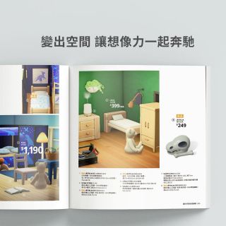 Na facebookowym portalu firmy zaprezentowano kilka przykładowych stron z katalogu przerobionych na ich growy odpowiednik. Ikeowskie wyposażenie wnętrz oraz aktorów usunięto, a w ich miejscu zaprezentowano meble, które możemy znaleźć w Animal Crossing: New Horizons. W poniższej galerii można zobaczyć, jak prezentują się takim nietuzinkowym katalogu: