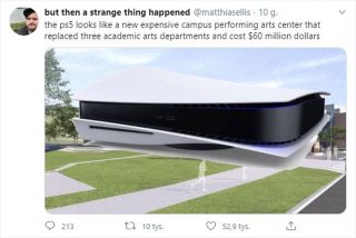 I choć nadal nie wiemy, ile przyjdzie nam zapłacić za ten sprzęt, szybko okazało się, że nietypowa konstrukcja PS5 ma ogromny potencjał memiczny. Twitter zaroił się od przeróbek, które ukazują konsolę w humorystyczny sposób.