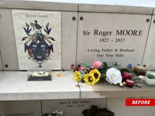 Fan skontaktował się w tej sprawie z TMZ, udostępniając serwisowi zdjęcia ze zniszczonego grobu odtwórcy roli Jamesa Bonda. Z nagrobka został oderwany herb rodzinny Moore’ów, a także miniaturowy model samochodu Aston Martin, którym aktor miał okazję jeździć, gdy wcielał się w agenta 007.