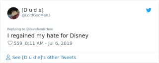 O sprawie robi się coraz głośniej, a Internet powoli zalewają memy i wpisy na Twitterze, które kpią z decyzji Disneya lub też otwarcie ją krytykują. Sytuacja została bardzo źle odebrana przez internautów, którzy chcą sprawić, by Disney zmienił zdanie. Na razie nie ma jednak kolejnej reakcji Domu Myszki Miki - jeżeli sytuacja znajdzie swoje rozwinięcie, natychmiast Was poinformujemy.