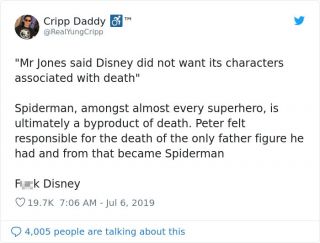 Lloyd Jones, ojciec Ollie'ego Jonesa, chłopca, który w wieku czterech lat zmarł po walce z rzadką chorobą genetyczną, pragnął umieścić na nagrobku swojego syna wizerunek Spider-Mana. Jak tłumaczy, malec był ogromnym fanem postaci, która zajmowała bardzo ważne miejsce w całym jego życiu. Aby dopiąć wszystkich formalności, rodzina skontaktowała się z przedstawicielami Disneya, którzy są posiadaczami praw do postaci Spider-Mana - okazuje się jednak, że Dom Myszki Miki jest nieprzychylny takim pomysłom i nie wyraził zgody na umieszczenie Człowieka-Pająka na nagrobku. Jak mówi załamany ojciec, zupełnie nie spodziewał się takiej reakcji i był przekonany, że Disney i Marvel nie będą mieli nic przeciwko.