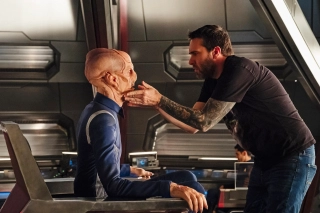 Warto dodać, że Doug Jones podczas realizacji Star Trek: Discovery spędzał każdego poranka na krześle do charakteryzacji od godziny do dwóch godzin. Jednak bardzo uciążliwe dla niego było to, że musiał w tym make-upie wytrzymać jeszcze wiele godzin zdjęć. Zobaczcie poniżej fotografie z nakładania prostetycznej charakteryzacji przez Jamesa MacKinnona.