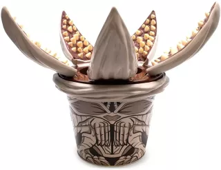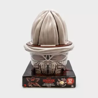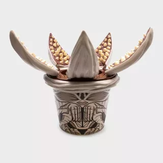 Kubełek na popcorn ma kształt Demogorgona. To prawdopodobnie jeden z najbardziej rozpoznawalnych złoczyńców z serialu Stranger Things. Uwagę zwraca w szczególności górna część opakowania, ponieważ wokół głównego otworu znajdują się rozpostarte szeroko płaty, pokryte ostrymi zębami. Żeby dostać się więcej do słonej przekąski, musimy wprost włożyć rękę w paszczę bestii.