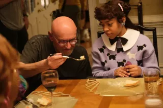 Na fotografiach możemy zobaczyć twórców serialu, czyli Matta i Rossa Dufferów, rozmawiających z aktorami i pracujących na planie.