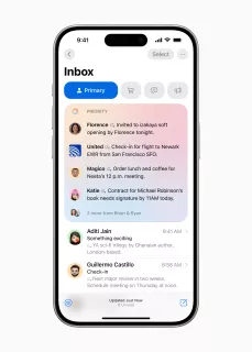 Ponadto model generatywny Apple automatycznie porządkuje wiadomości e-mail i powiadomienia na podstawie priorytetu i kategorii. Podglądy maili zawierają teraz streszczenia całej treści zamiast kilku pierwszych słów.