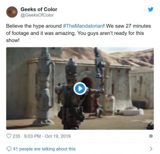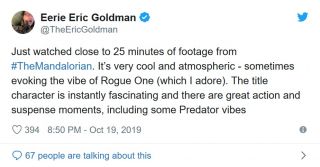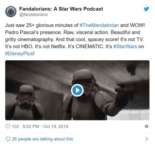Do premiery The Mandalorian pozostał już niecały miesiąc, a do sieci trafiły pierwsze opinie na temat produkcji. Dziennikarzom zaprezentowano 30 minut materiały i jak się okazuje, ich reakcje są bardzo entuzjastyczne. Widzowie mówią, że serial ma świetny mroczny klimat i wyraźnie czuć jego przynależność do świata Star Wars. Przy tym wszystkim całość nie jest odtwórcza, a raczej prezentuje dużo nowego - idee czy koncepcje, które z miejsca spodobają się wszystkim fanom. Choć było to tylko pół godziny, zebrani wyraźnie odczuli dużo emocji po seansie - dziennikarze zapewniają, że odbiór przypomina odbiór pełnometrażowego filmu i że skala przedsięwzięcia jest tak duża, że chętnie obejrzeliby odcinki na wielkich ekranach. Czuć, że jest to produkcja wysokobudżetowa: mamy tu statki kosmiczne, rozmaite kreatury, widowiskowe efekty specjalne - czyli wszystko to, na co czekają fani Gwiezdnych Wojen. Pochwały zbiera także ścieżka dźwiękowa.