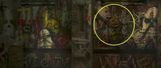 Nikogo, kto oglądał, nie zaskoczy fakt, że początkowe sceny z graffiti są pełne nawiązań. Na ścianach widzimy m.in. C-3PO, szturmowca oraz, jak się okazuje, Cylona z Battlestar Galactica.