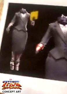Pokazał również szkic koncepcyjny Nowego Asgardu pod wodzą Walkirii, ale szczegóły roli tej postaci są trzymane w tajemnicy. Dodał, że jest fanem bohatera zwanego Beta Ray Bill, ale nie jest pewny, czy pojawi się on w filmie. Potwierdził jednak, że na pewno nie zobaczymy Silver Surfera, o którym była mowa w plotkach. Nie chce też zdradzić, kogo zagra Christian Bale oraz czy pojawi się Loki. Brak komentarza w sprawie tego bohatera może sugerować, że go zobaczymy.