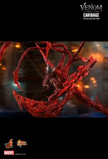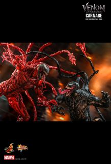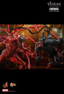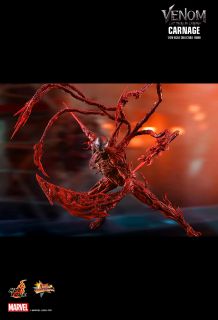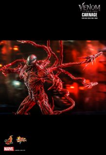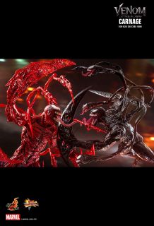Teraz Hot Toys zaprezentowało figurkę Carnage'a o wysokości 43 cm. Zabawka jak zawsze wykonana jest z ogromną starannością i dbałością o każdy szczegół. W zestawie znajdują się różne "głowy" bohatera, szczerzącą zębiska z wyciągniętym językiem lub uśmiechniętą. Są też liczne akcesoria, bronie, pazury, liczne macki i nie tylko. Mamy też porównanie z figurką Venoma i czerwony symbiont jest wyraźnie większy. Zobaczcie: