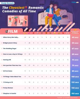 W tym celu sprawdzono, jak często w danym filmie romantycznym zdarza się banalna scena lub wątek związany właśnie z dniem zakochanych. Wśród tych elementów wymieniono m.in.: pocałunek, podarunek, scenę randki, scenę seksu, ale też scenę płaczu i scenę zerwania. Okazuje się, że najbardziej tandetny jest film Kiedy Harry poznał Sally, w którym co 48 sekund mamy jeden z wymienionych wyżej aspektów. Na drugim miejscu jest Dziennik Bridget Jones (co 59 sekund) oraz Od wesela do wesela (co 1 minutę i 7 sekund) na trzecim. W zestawieniu mamy także Pretty Woman (co 156 sekund) oraz Notting Hill (co 75 sekund).